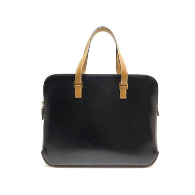 • VINTAGE SAC A MAIN HERMES BRIO CUIR BOX BLEU PORTE EPAULE BLUE LEATHER HAND BAG