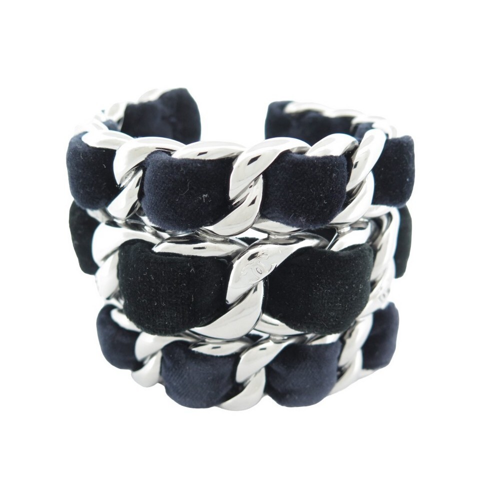 • BRACELET CHANEL MANCHETTE CROIX METALISEE VELOURS 17 CM NOIRE CUFF 1300€