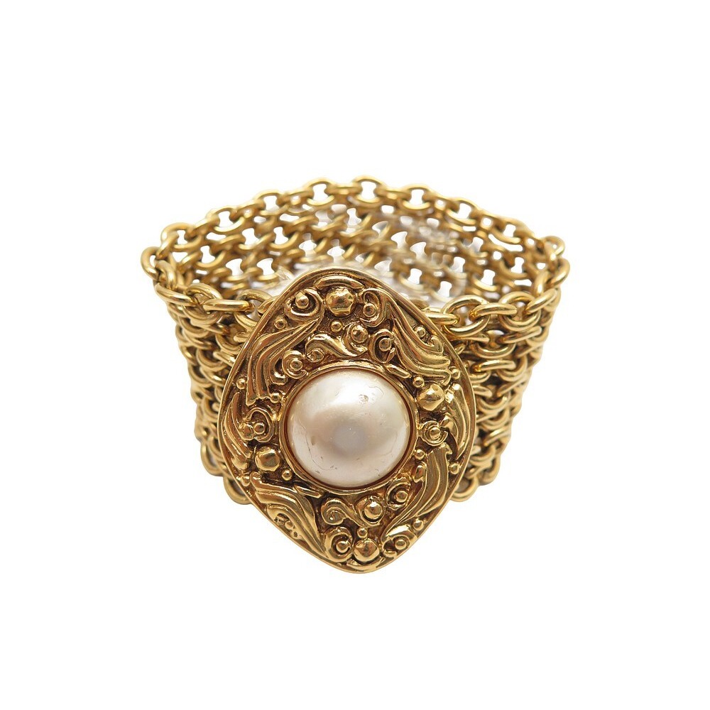 • VINTAGE BRACELET PACO RABANNE CHAINE FERMOIR STYLE GLENAN 17CM METAL DORE BANGLE