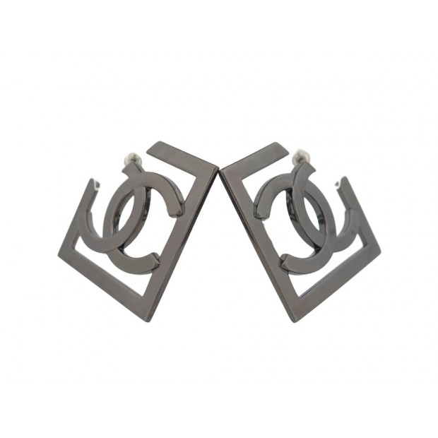 • BOUCLES D'OREILLES CHANEL PUCES CUBE LOGO CC 3D METAL DORE STEEL EARRINGS 800€