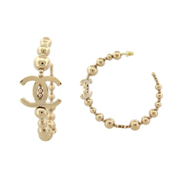 BOUCLES D'OREILLES creoles logo cc perles dorees